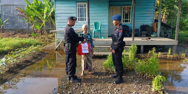 Kegiatan Penyaluran Paket Sembako di salurkan oleh tim patroli R2 Kompi 2 Batalyon C pelopor di seputaran Desa Jone Salah satunya Mbah Romla.