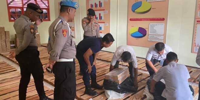 Paser – Kedatangan Logistik pemilu 2024 di terima oleh Kasus perencanaan dan Informasi Kpu Sdri. Rully Alviany, SE, Kamis, (02/11/23).