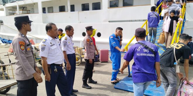 Samarinda – Kapolsek Kawasan Pelabuhan Samarinda Kompol Teuku Zia Fahlevie, SIK, MH., melalui Kanit Samapta Iptu Kasidi, SH., pimpin giat Pengamanan Kedatangan Kapal “KM. ADITHYA” dari Pelabuhan Penumpang Kota Pare Pare Sulsel Menuju Pelabuhan Kota Samarinda Kalimantan Timur. Senin (29/1/2024).