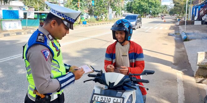 Personil Satlantas Polres Kutai Kartanegara Berikan Teguran Tertulis Ke Pengendara Dengan Humanis