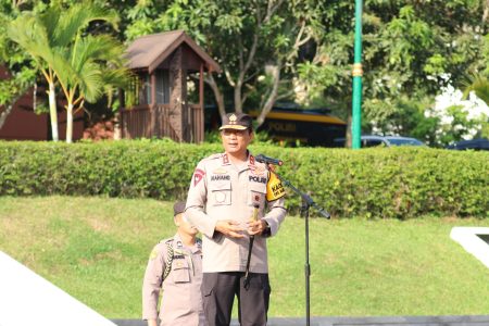 Balikpapan – Kapolda Kaltim Irjen Pol. Drs.Nanang Avianto, M.Si., memimpin Apel Pagi seluruh personil polri dan ASN Polda Kaltim di Lapangan Mapolda Kaltim, Senin (6/11/2023).