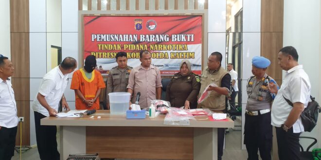 Balikpapan-Direktorat Reserse Narkoba (Ditresnarkoba) Polda Kaltim menggelar pemusnahan barang bukti (BB) narkotika jenis sabu sebanyak 1.456,86 gram pada hari Kamis, 30 November 2023, di Ruang Rapat Ditresnarkoba Polda Kaltim. Pemusnahan ini merupakan hasil sitaan dari tersangka WI oleh Subdit 1 Ditresnarkoba Polda Kaltim.