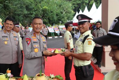 BALIKPAPAN- Polda Kalimantan Timur menggelar acara Syukuran HUT Satpam ke-42 secara sederhana Lapangan Apel Polda Kaltim, Senin (30/1/2023).