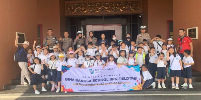 Balikpapan – Ditlantas Polda Kaltim terima kunjungan puluhan anak-anak didampingi para guru dari SD Bina Bangsa School di Mapolda Kaltim, Senin (18/9/2023).