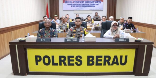 Berau – Dalam upaya menjalin komunikasi yang baik antara Polri dengan masyarakat, Polres Berau menggelar Pelaksanaan Dialog Publik Kesiapan Polri dalam menyambut Natal dan Tahun Baru di masa Kampanye Pemilihan Legislatif (Pileg) dan Pilpres 2024. Acara tersebut dilaksanakan pada hari Rabu, tanggal 29 November 2023, dimulai pukul 10.30 WITA hingga selesai, di Ruang Rapat Polres Berau.