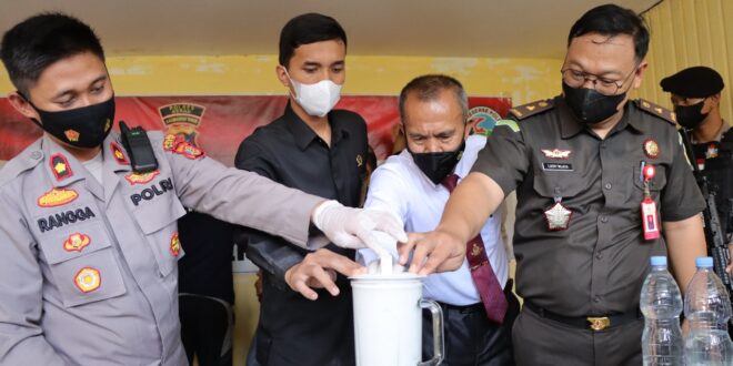 Berau – Sebanyak 144,456 gram narkotika jenis sabu-sabu diblender oleh Satresnarkoba Polres Berau dalam giat pemusnahan di Ruang Konferensi Pers Polres Berau, Kamis (10/11/2022).