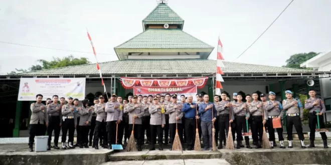 Kukar – Dalam rangka memperingati Isra mi’raj nabi besar Muhammad Saw 1444 H/2023 M. Polres Kutai Kartanegara menggelar bakti sosial membersihkan lingkungan di sekitaran Masjid Al-Muttaqin Tenggarong, Selasa (14/02).