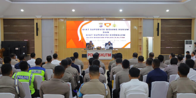 Kutim – Polres Kutai Timur menggelar kegiatan supervisi kermalem dan supervisi Bidang Hukum (Bidkum) Polda Kalimantan Timur di Aula Pelangi Polres Kutai Timur, Selasa, (11/06/24).