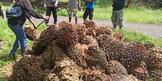 Adapun barang bukti yang berhasil diamankan dari pelaku berupa 1 Unit Dump Truck Mitsubishi heserta STNK-nya, 1 Buah Tojok dan 149 (seratus empat puluh Sembilan) Janjang TBS.