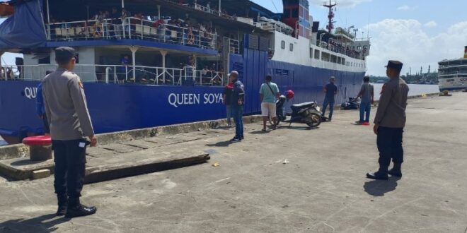 Samarinda – Terwujudnya rasa aman bagi penumpang yang berangkat di pelabuhan Samarinda Personel Polsek Kawasan Pelabuhan Samarinda Polresta Samarinda Polda Kaltim melaksanakan giat Pengamanan untuk memberikan kenyamanan bagi para penumpang dalam kegiatan keberangkatan kapal KM Queen Soya di pelabuhan Samarinda. Rabu (3/8/2023).