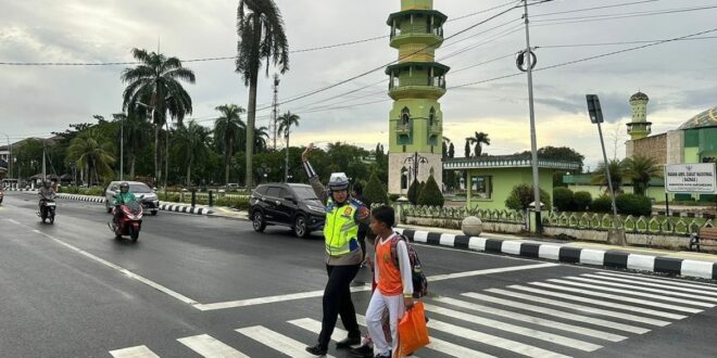 Kukar – Satuan Lalu Lintas Polres Kutai Kartanegara melaksanakan gaktur pagi hari, di depan sekolahan wilayah kecamatan Tenggarong, untuk antisipasi kemacetan saat jam masuk sekolah, Kamis (1/2/2024).