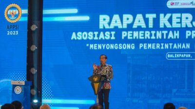 Balikpapan – Presiden RI Joko Widodo (Jokowi) dan Ibu Iriana Joko Widodo melanjutkan kegiatan kunjungan kerjanya di Provinsi Kalimantan Timur, pada Kamis (23/02/2023). Mengawali hari kedua kunjungan kerja, Presiden akan menghadiri Peresmian Pembukaan Rapat Kerja Nasional (Rakernas) Asosiasi Pemerintah Provinsi Seluruh Indonesia (APPSI) Tahun 2023, yang digelar di Ballroom Hotel Novotel, Kota Balikpapan.