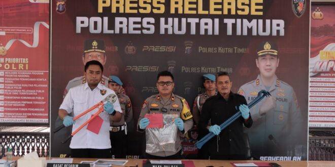 kutim – Pada Rabu, 15 November 2023, dilakukan Press Release tentang tindak pidana pencurian dengan pemberatan yaitu pembobolan Kantor PT. Pulau Baru Mandiri. Press Release adalah acara khusus yang dibuat sebagai sarana mengumumkan, menjelaskan dan mempromosikan, dimana Press Release dianggap penting dikarenakan memiliki tujuan untuk menyampaikan pesan dan informasi kepada media. Press Release tentang tindak pidana pencurian ini dipimpin langsung oleh Kasat Reskrim AKP Dimitri Mahendra Kartika, S.I.K., M.Si.