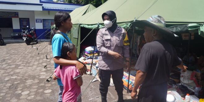 Dalam menjalankan tugas sebagai Bhabinkamtibmas, Aiptu Reni tetap membantu para korban di pengungsian dan menghibur anak-anak yang menjadi korban gempa.