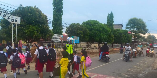 Kubar – Personel Polres Kubar dan jajaran rutin melaksanakan pengaturan pagi (gatur) di setiap perempatan jalan, simpul-simpul jalan, depan sekolah maupun di kawasan yang dianggar rawan kemacetan serta rawan laka lantas.