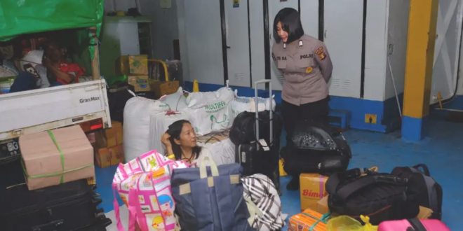 Balikpapan – Personel Satgas Humas Operasi Ketupat Mahakam 2023 memantau arus mudik lebaran Idul Fitri 1444 H di Pelabuhan Semayang Kota Balikpapan.