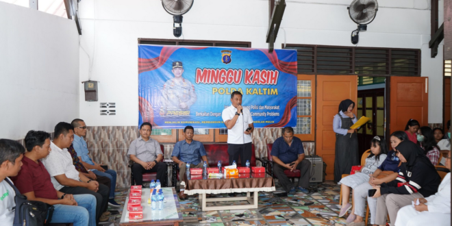 Balikpapan – Tidak hanya menggiatkan program Jumat Curhat, Polda Kaltim juga melaksanakan program Minggu Kasih. Kegiatan Minggu Kasih kali ini di laksanakan di Panti Asuhan Katolik Tabita Putri, jalan Komp. PU, Prapatan, Kecamatan Balikpapan Selatan Minggu (27/8/2023).