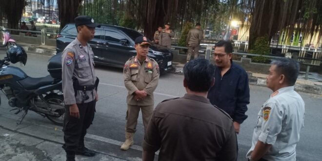 Samarinda – Personil Polsek Samarinda Kota melakukan pengaman saat penertiban Razia Gabungan TNI, POLRI Dan Satpol PP terhadap Pedagang Kaki Lima (PKL) di Sepanjang jalan Otista Dan Jl. Jelawat Kecamatan Samarinda Ilir Kota Samarinda. Kamis (25/1/24) Pagi.