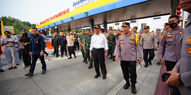 Jawa Tengah – Kapolri Jenderal Listyo Sigit Prabowo meninjau pelaksanaan Operasi Ketupat di wilayah Jawa Tengah, Selasa (18/4/2023). Dari laporan yang ia terima, terjadi peningkatan jumlah kendaraan hingga 300 persen di gerbang tol (GT) Kalikangkung.