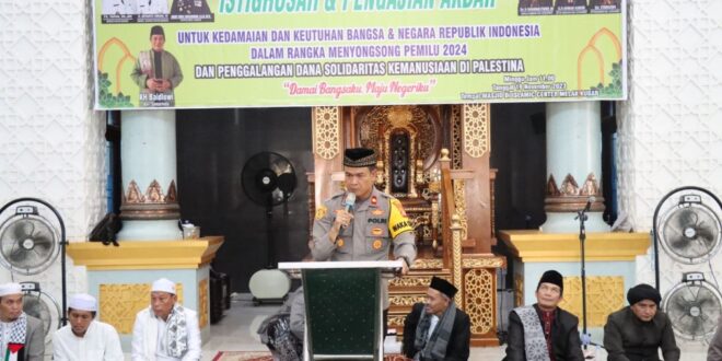 Kutai Barat- Wakapolres Kutai Barat menghadiri Istigosah dan Pengajian Akbar bertema “Untuk Kedamaian dan Keutuhan Bangsa dan Negara Republik Indonesia dalam rangka menyongsong Pemilu 2024” di Masjid Islamic Center kec. Melak kab. Kutai Barat. minggu 19/11/2023