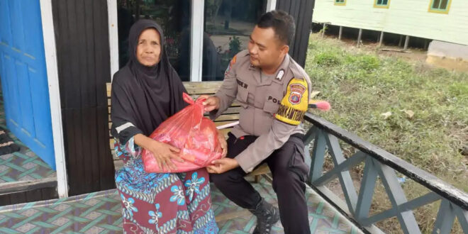 Wujud kepedulian Terhadap Sesama, Bhabinkamtibmas Polres Kukar Berikan Bantuan Sembako Kepada Warga Kurang Mampu